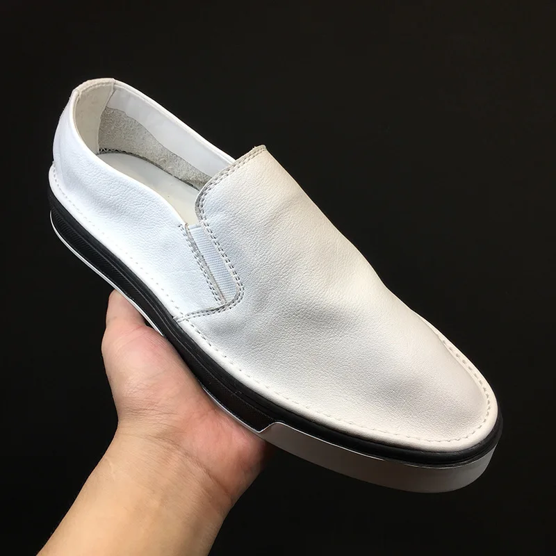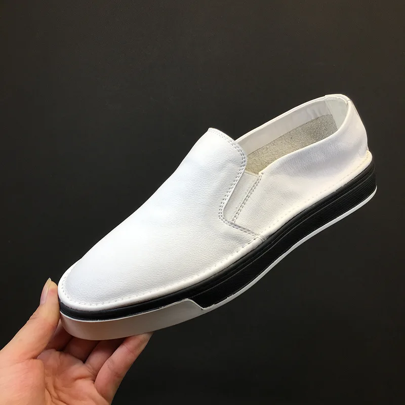 Fashion Designer Shoes Men 100% Genuine Leather Sneakers Loafers Breathable Summer White Casual Sho