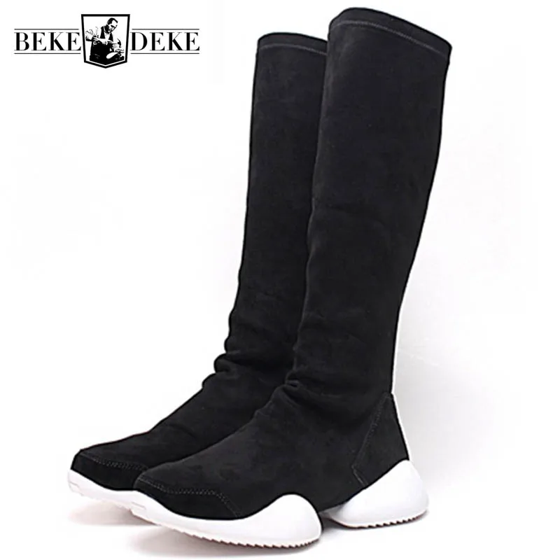 Men Sock Shoes Mid-Calf Boots Flock Luxury Trainers Riding Winter Casual Sneakers Lovers Flats Shoe