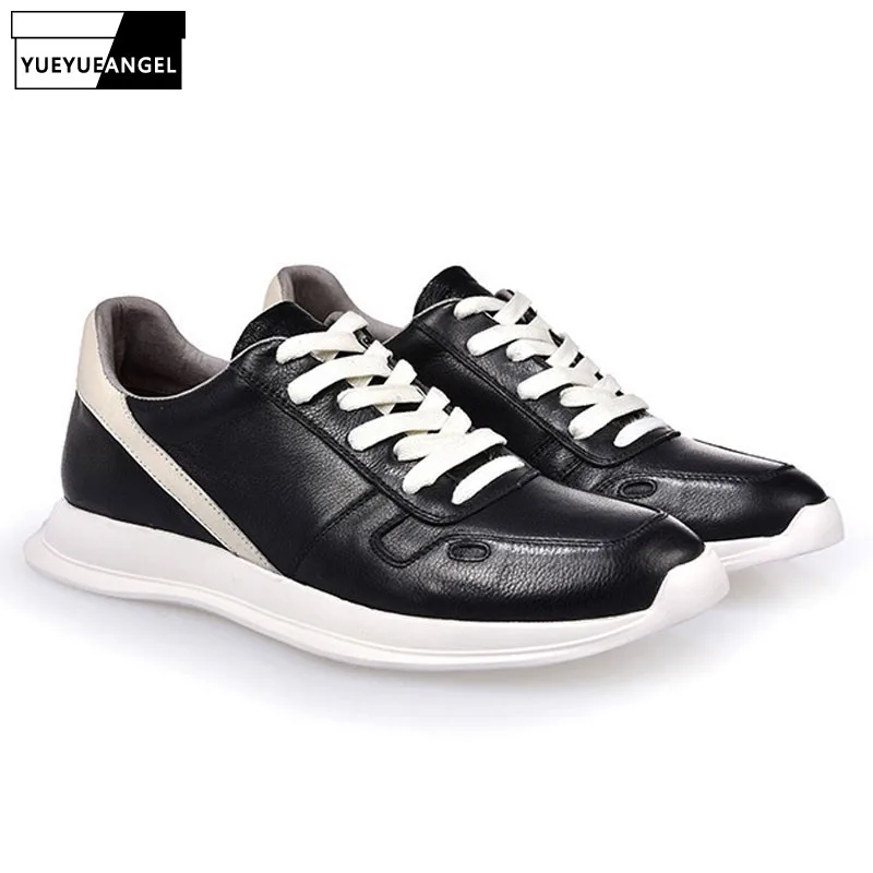 New Autumn Spring 2020 Genuine Leather Men Shoes Sapato Masculino Black White Casual Footwear Breat