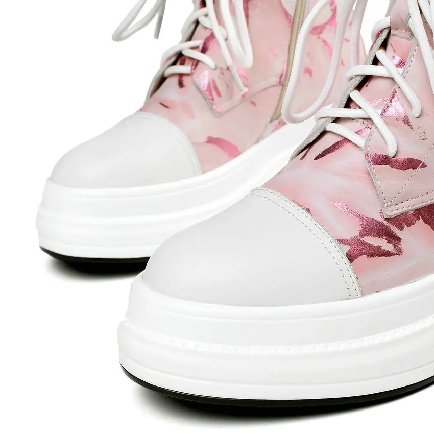 ESVEVA 2020 Women Ankle Boots Platform Lace Up Zipper Women Shoes Cow Leather Casual Sneakers Autum