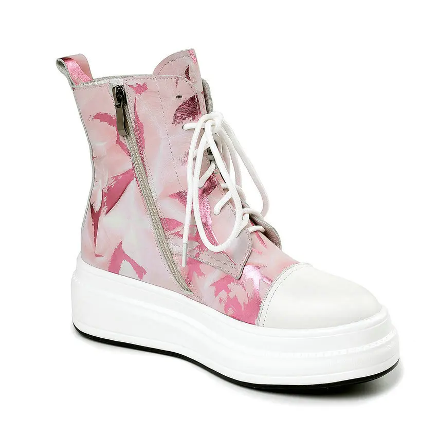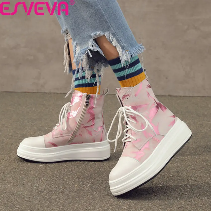 HIGH QUALITY ESVEVA 2020 Women Ankle Boots Platform Lace Up Zipper Women Shoes Cow Leather Casual Sneakers Autum