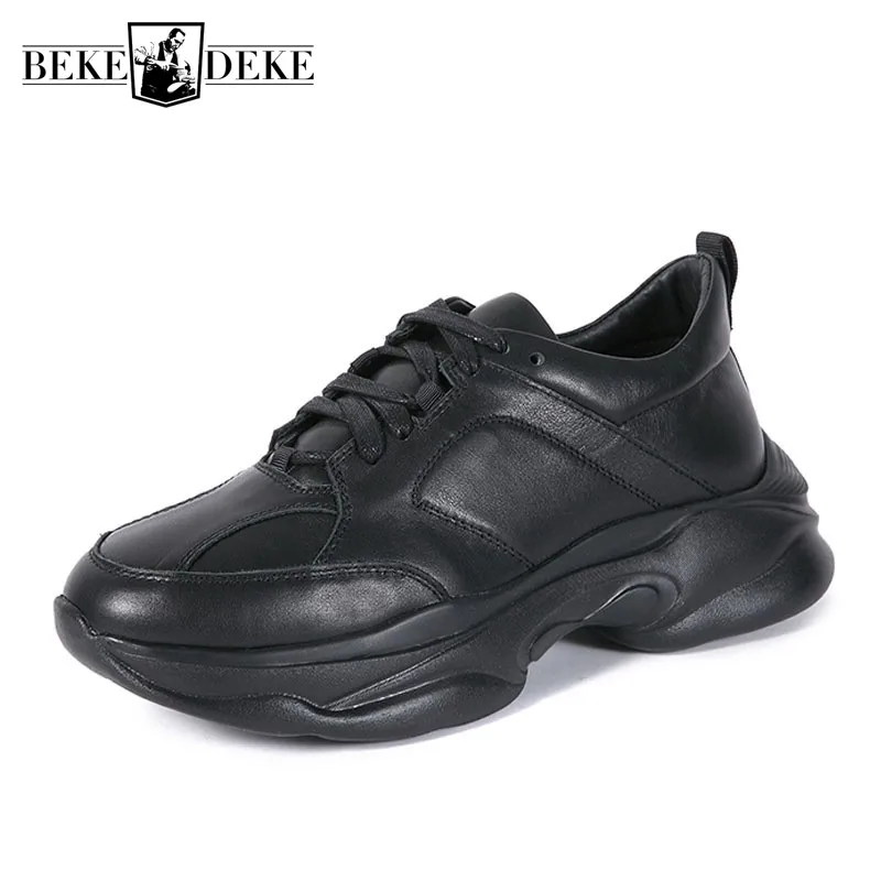 Men Shoes 2019 Spring Genuine Leather Sneakers Homme Round Toe Business Casual Shoes Streetwear Bla