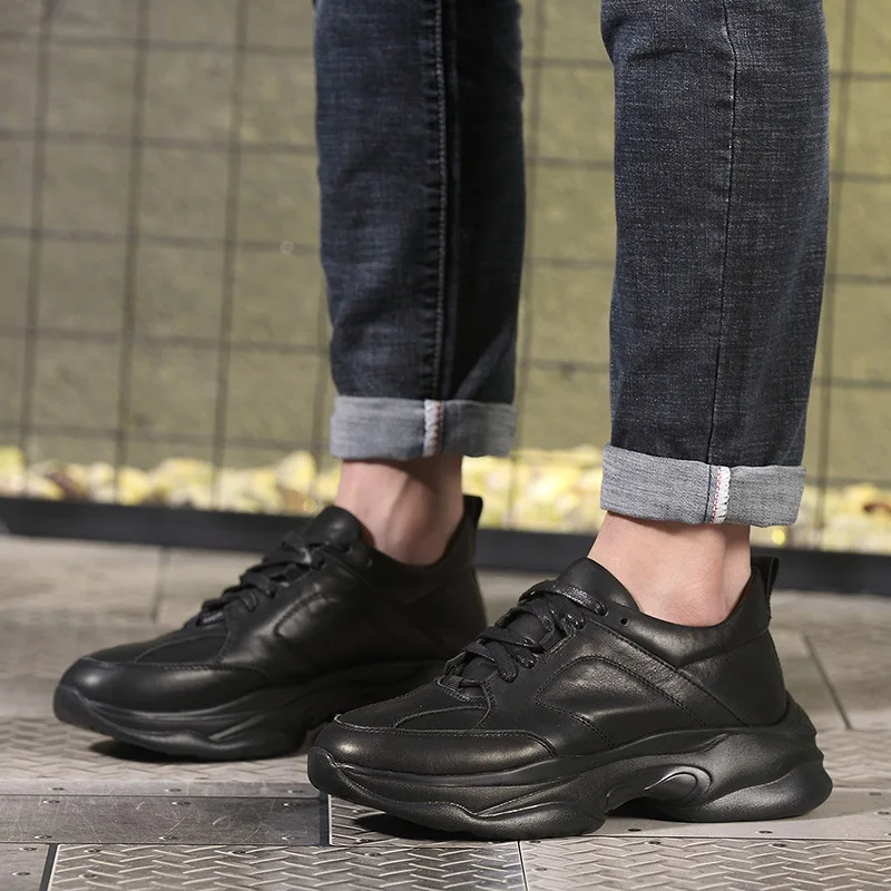 TOP Men Shoes 2019 Spring Genuine Leather Sneakers Homme Round Toe Business Casual Shoes Streetwear Bla