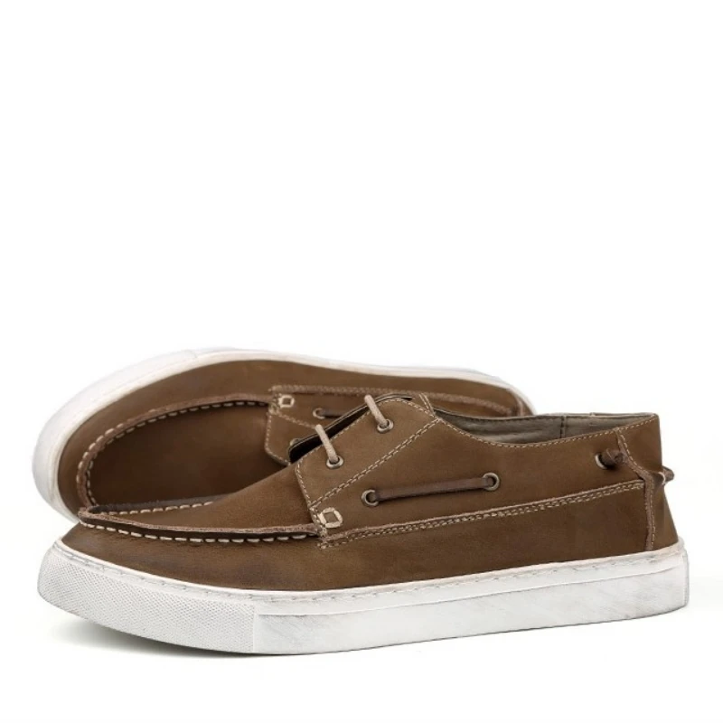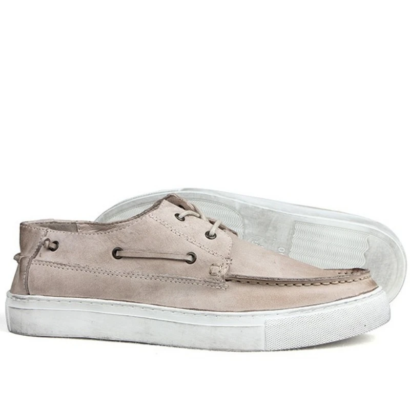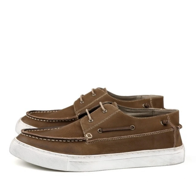 Summer Casual Genuine Leather Shoes Men Vintage British Style Flat Boat Shoes Lace Up Fashion White