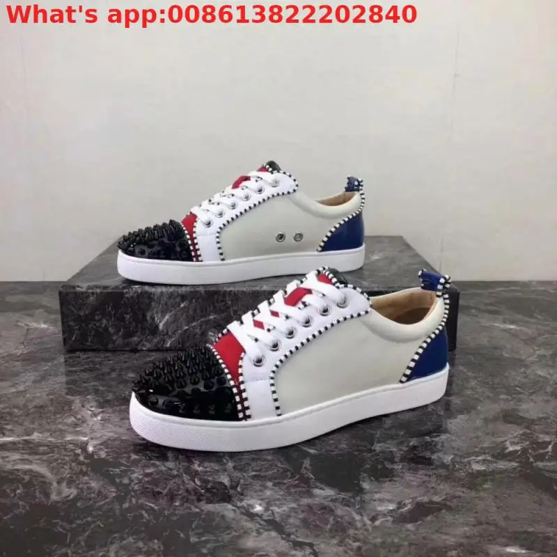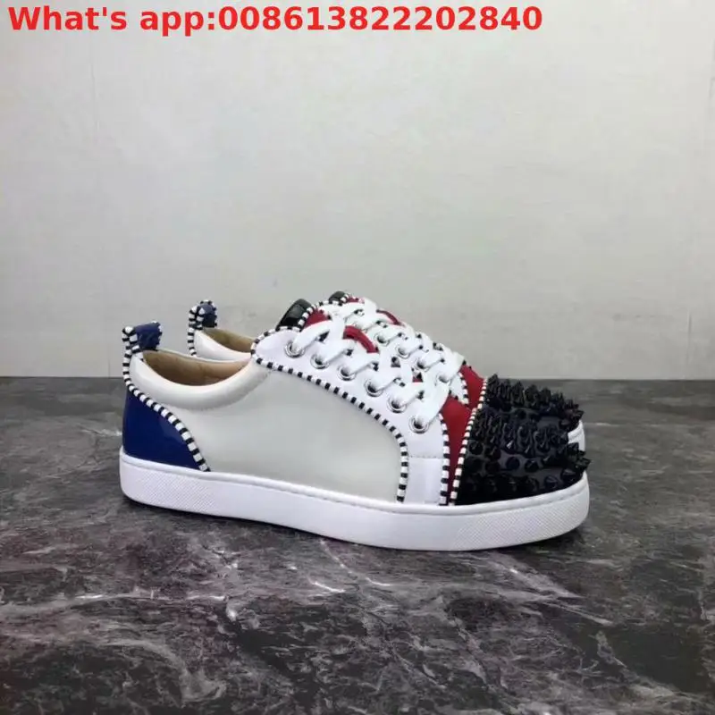 REVIEW TOP SELLER Wholesale Genuine Leather Casual Shoes Designer Sneaker Lace Up Patchwork Low Top Red Bottom Shoes
